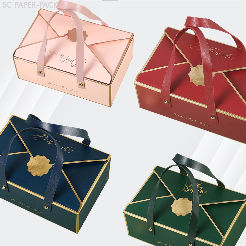 กล่องของขวัญ ของชำร่วย ทรงจดหมาย สีพื้น ขอบทอง (1ใบ)