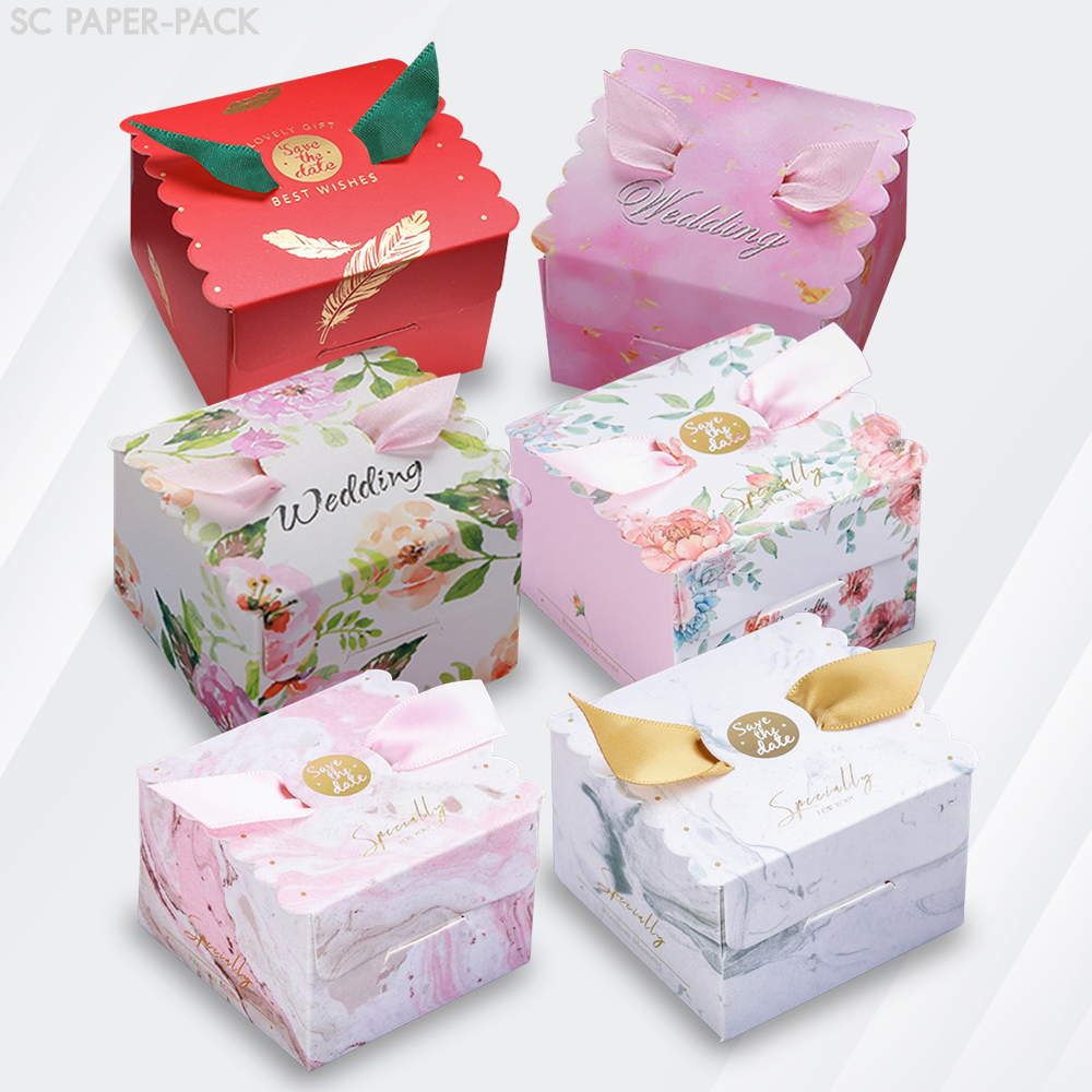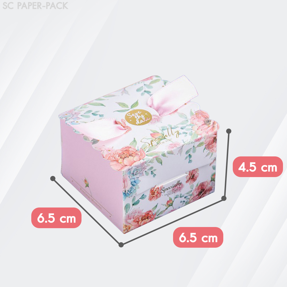 กล่องใส่ของชำร่วย+ริบบิ้น ทรงสี่เหลี่ยม 6.5×6.5×4.5 ลาย 30201 (แพ็ค 10 ใบ)