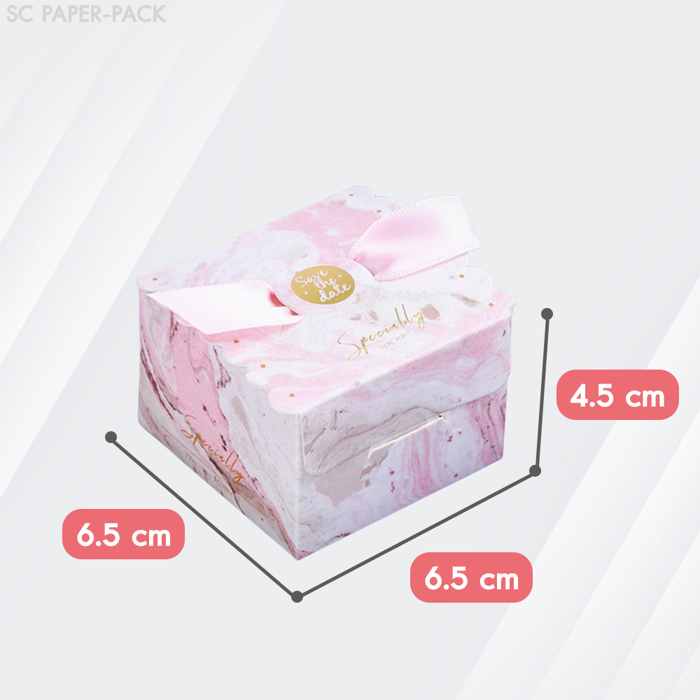 กล่องใส่ของชำร่วย+ริบบิ้น ทรงสี่เหลี่ยม 6.5×6.5×4.5 ลาย 30203 (แพ็ค 10 ใบ)