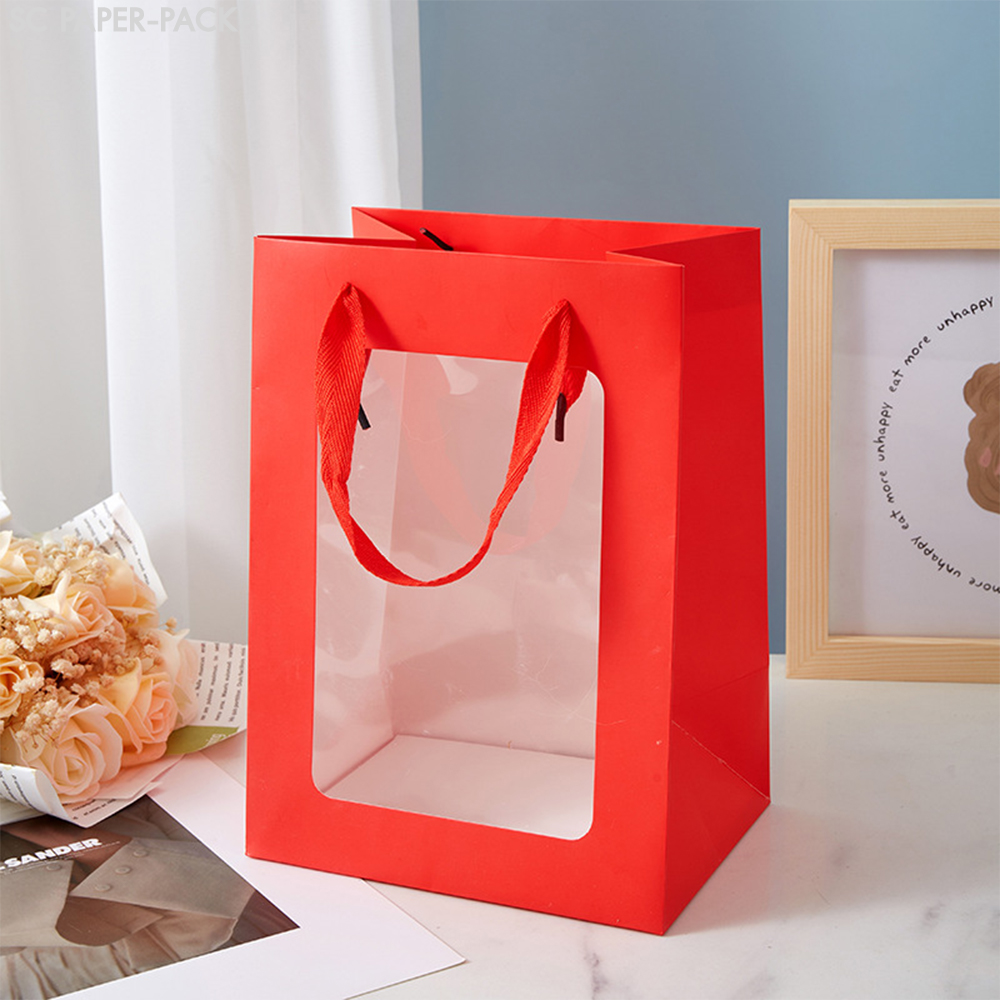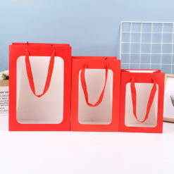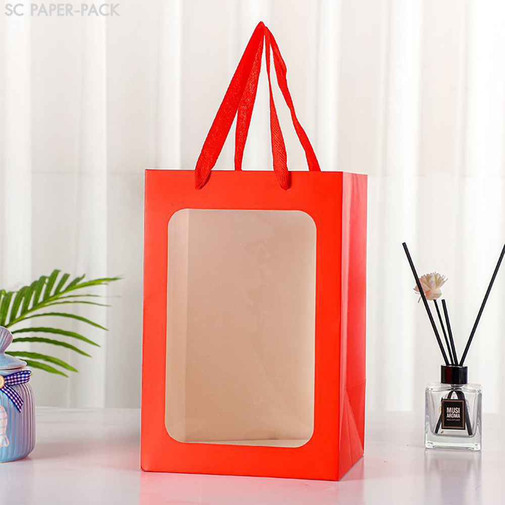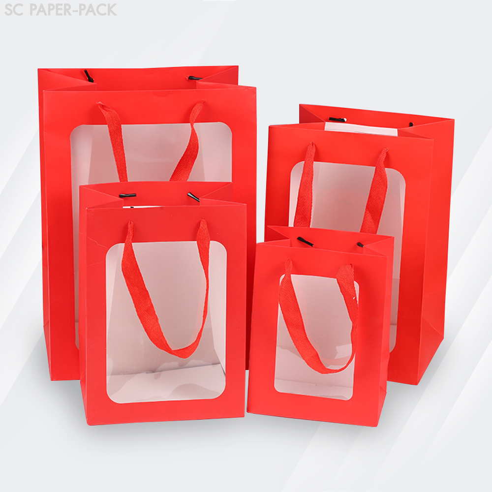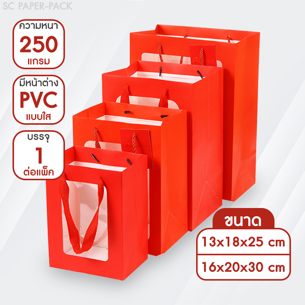 ถุงกระดาษ มีหน้าต่าง มีหูหิ้ว สีแดง (เเพ็ค 1 ใบ)