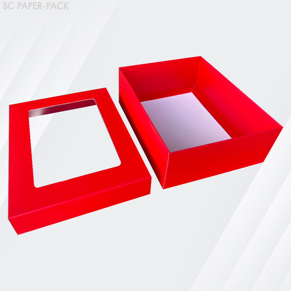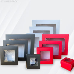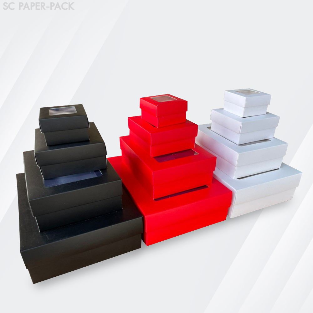 กล่องคราฟท์ฝาครอบ มีหน้าต่าง สี ขาว ดำ แดง (เเพ็ค 12)