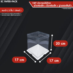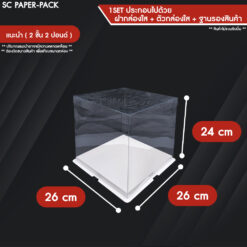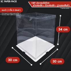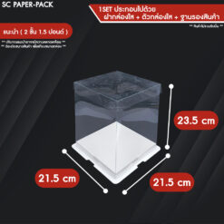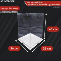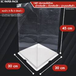 – ชุดสินค้าประกอบด้วย :ฐานกระดาษรองสินค้า x1 , ตัวกล่องพลาสติกใส x1 , ฝาพลาสติกใส x1