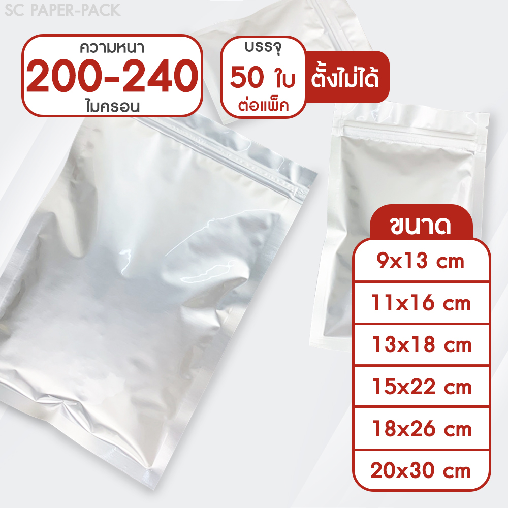 ซองฟอยด์ทึบ ซิปล็อค ตั้งไม่ได้ สีเงิน