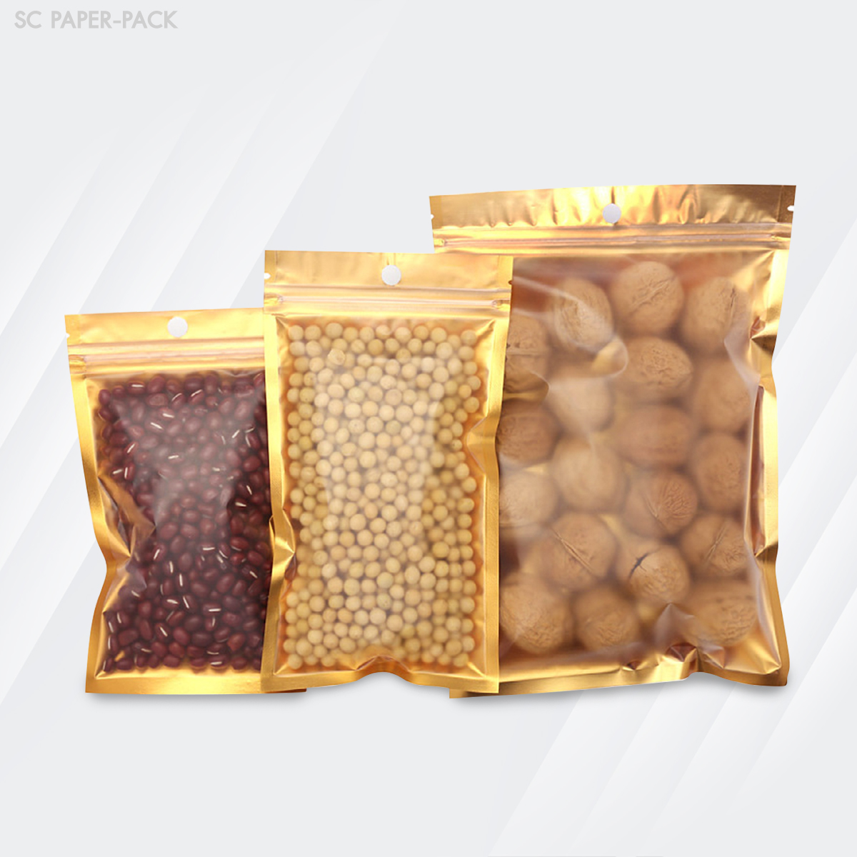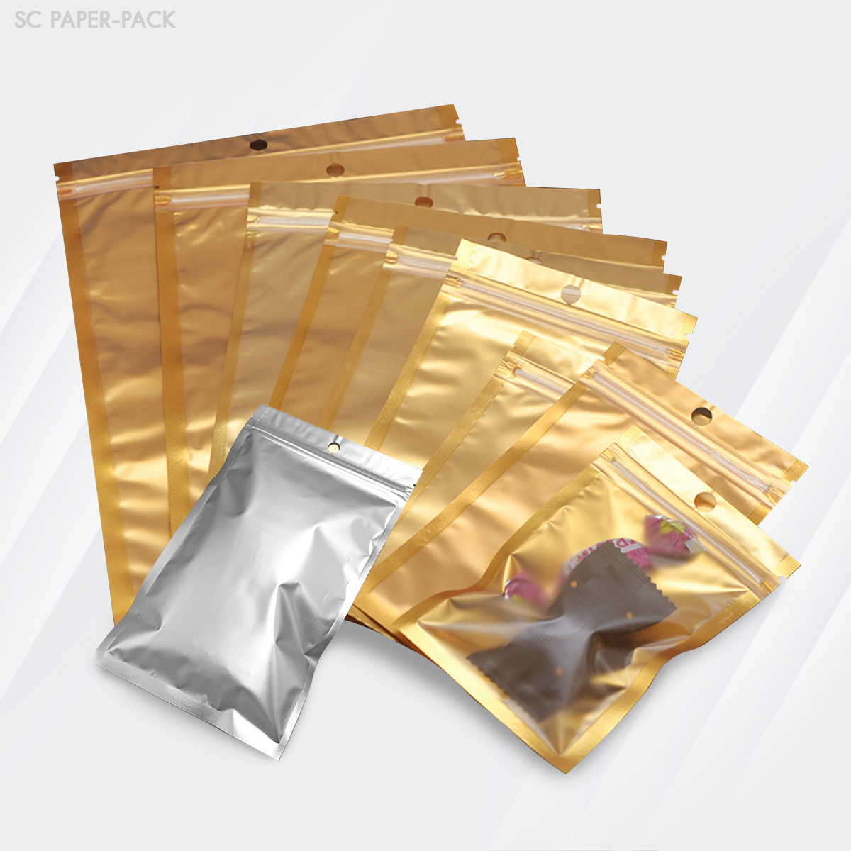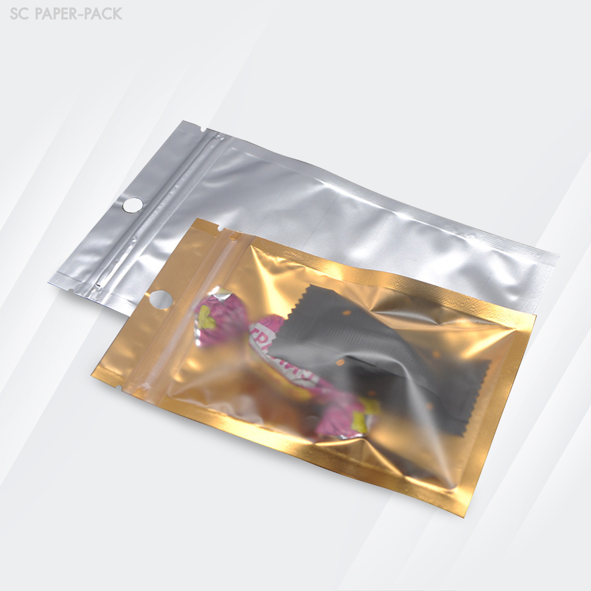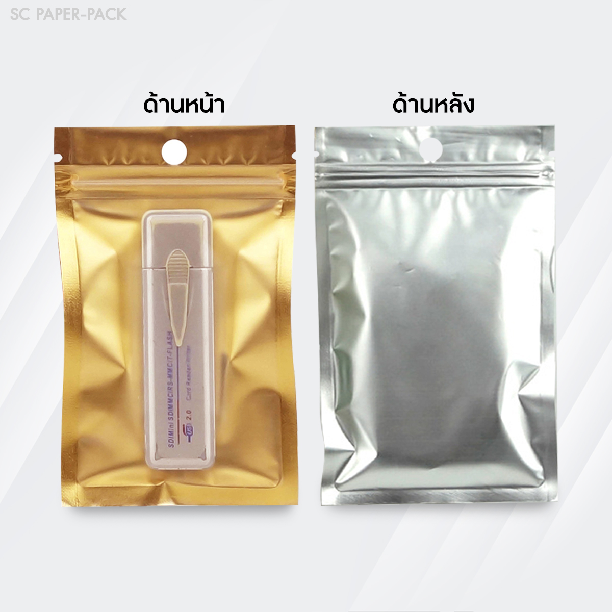 ซองพลาสติก หน้าขุ่น หลังทึบในทองนอกเงิน ซิปล็อค ตั้งไม่ได้ (แพ็ค 50 ใบ)
