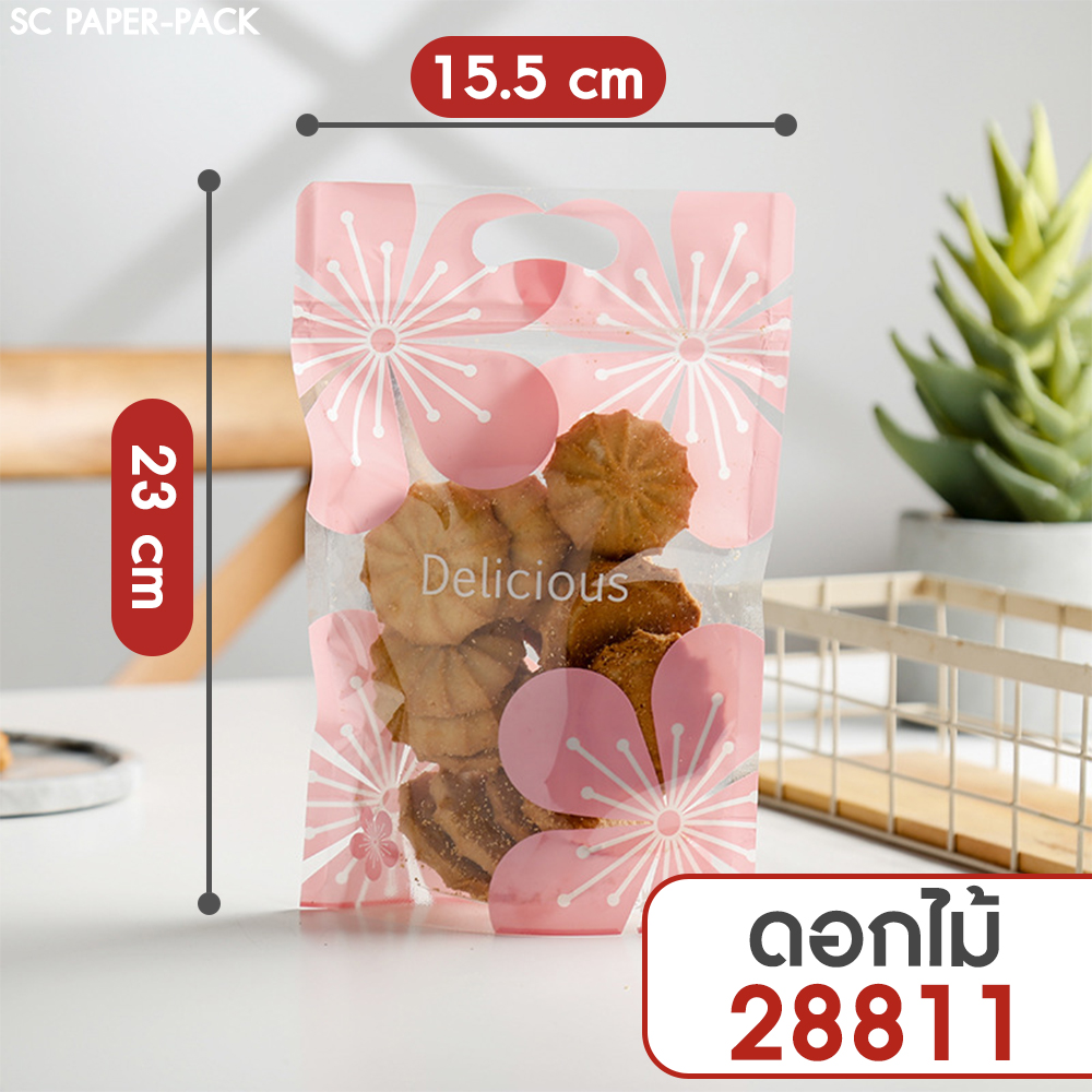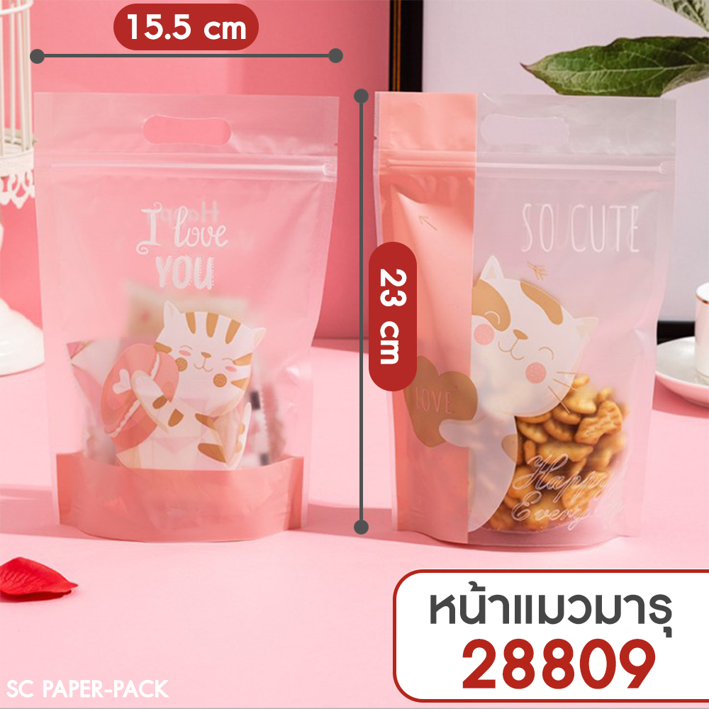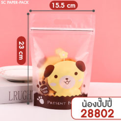 ถุงซิปล็อคลายน่ารักๆ มีที่จับ สามารถตั้งได้ ขนาด 15.5 x 23 cm.
