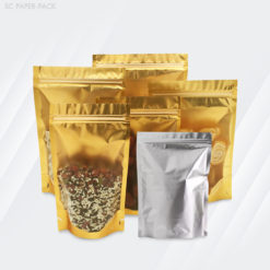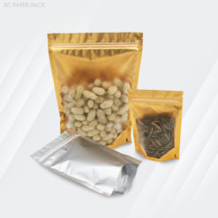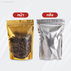 – ถุงพลาสติกหน้าขุ่น หลังทึบด้านในทองนอกเงิน ตั้งได้ ซิปล็อค