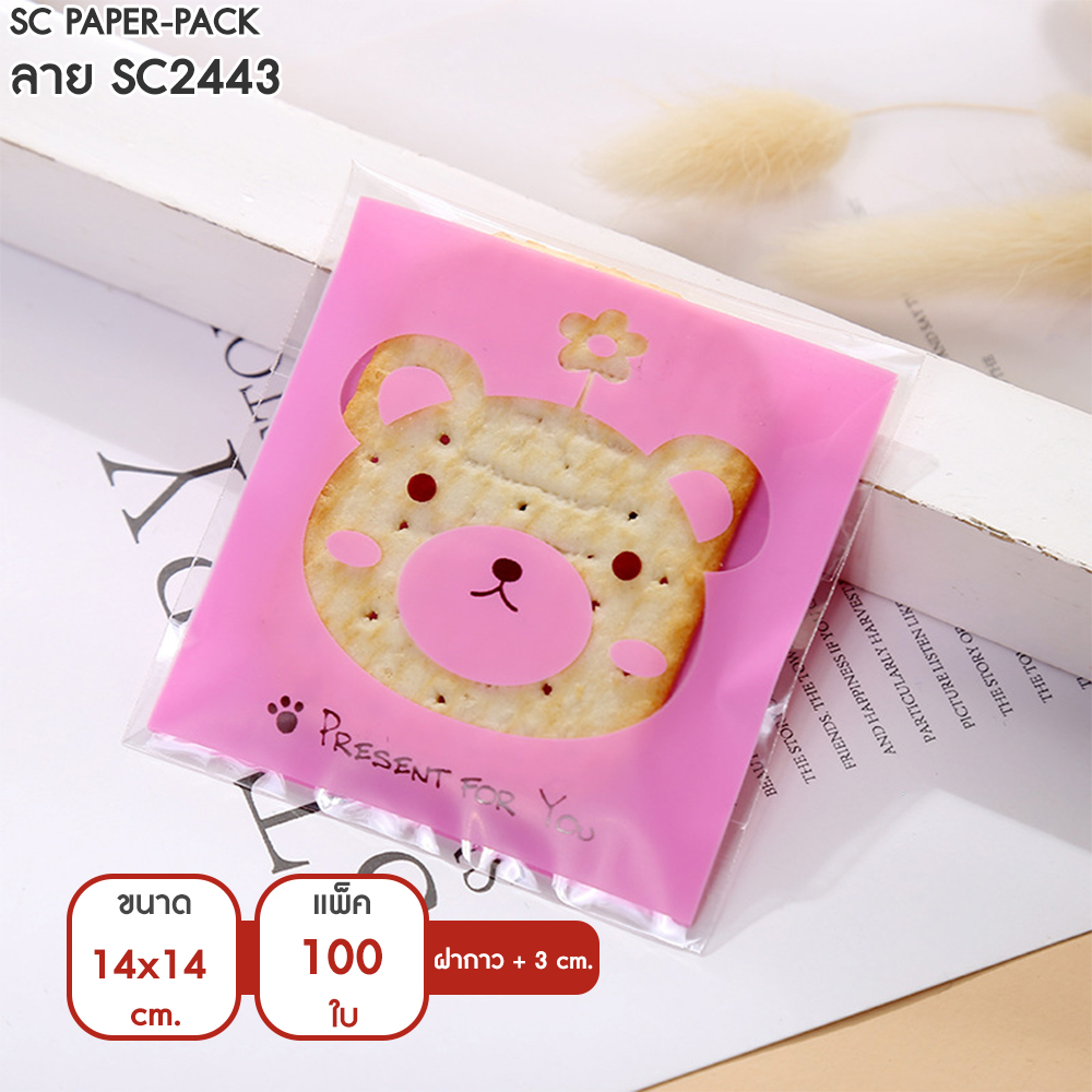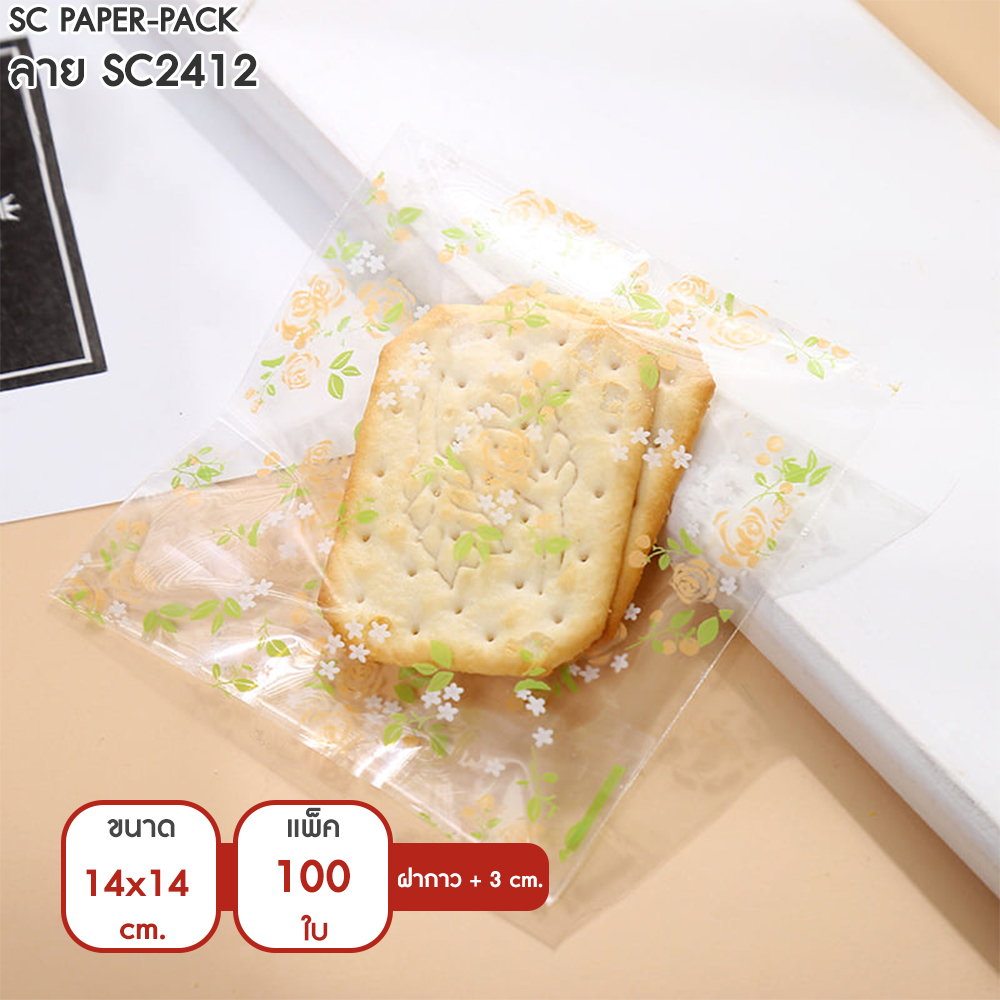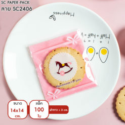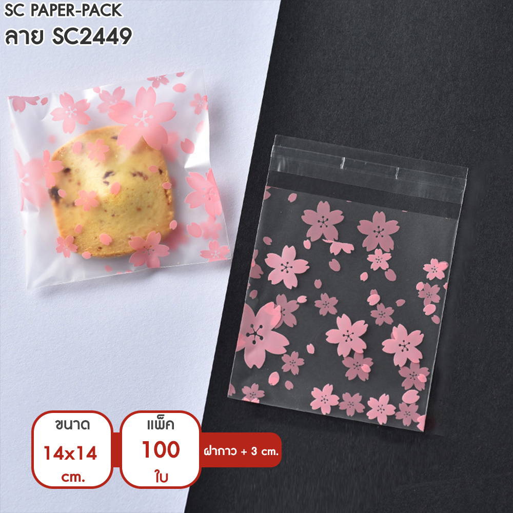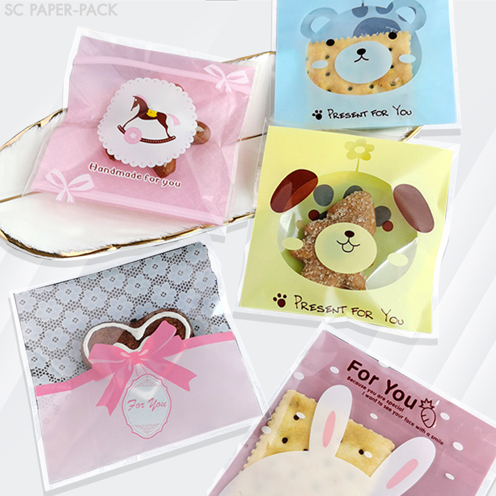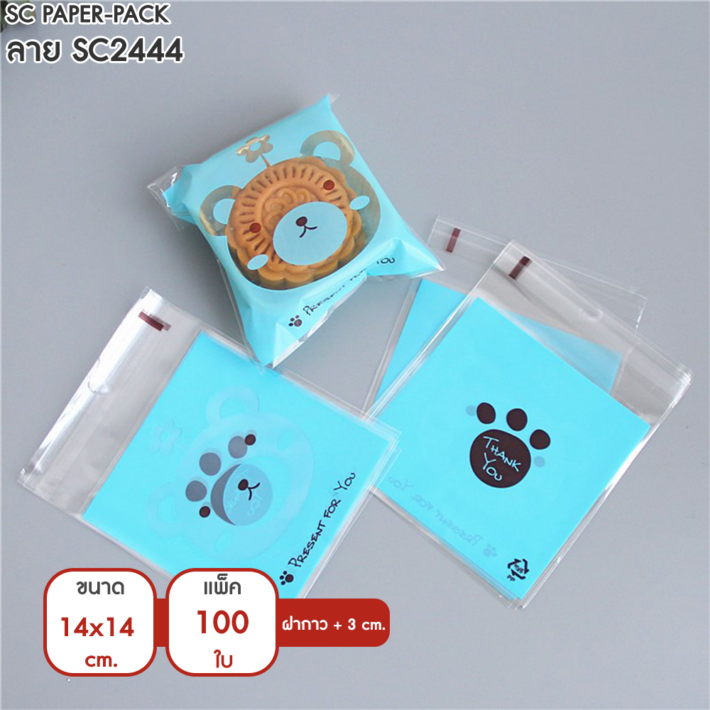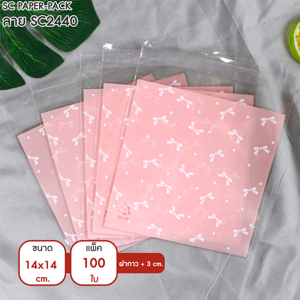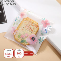 ซองพลาสติก OPP ใส มีเทปกาว พิมพ์ลาย ขนาด 14×14+3 cm. (แพ็ค 100 ใบ)