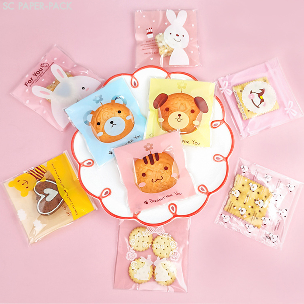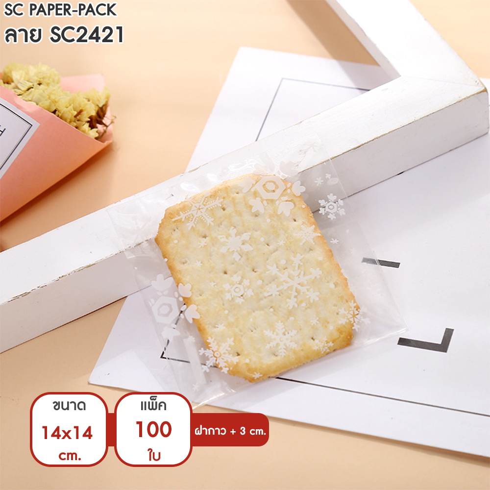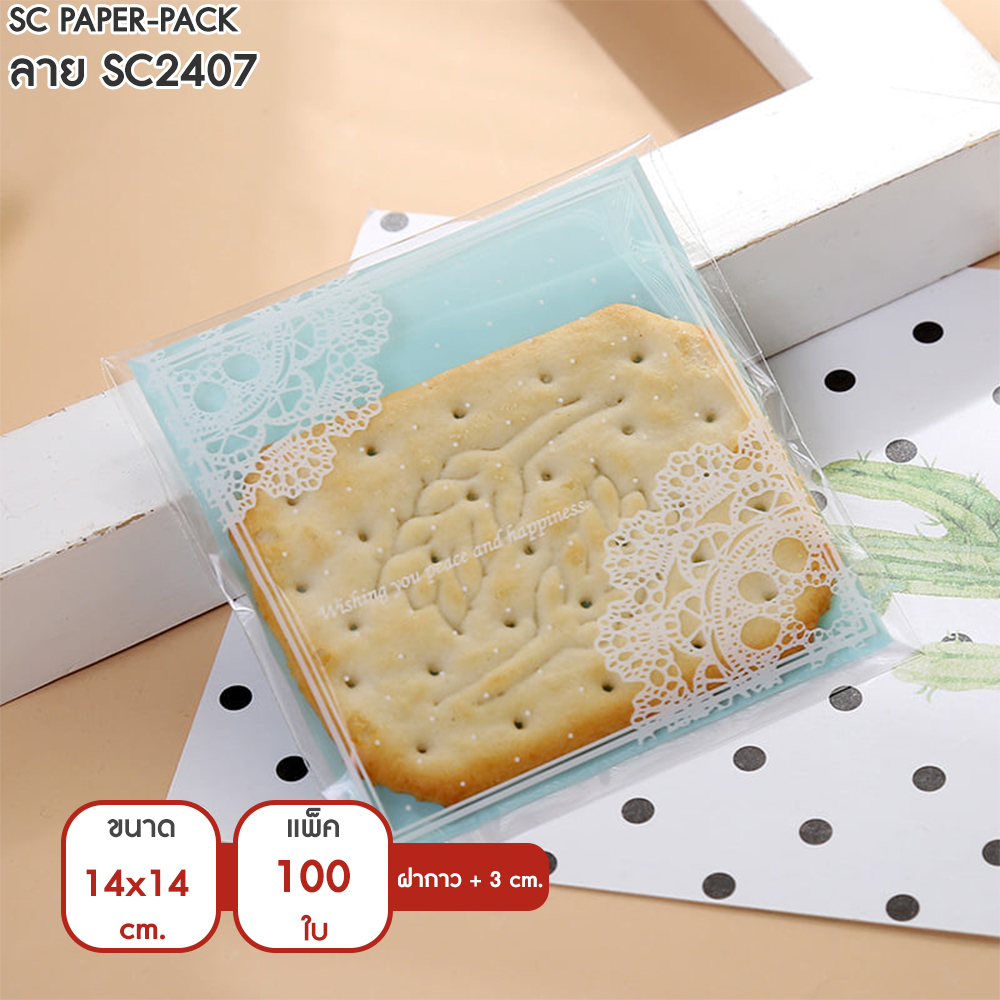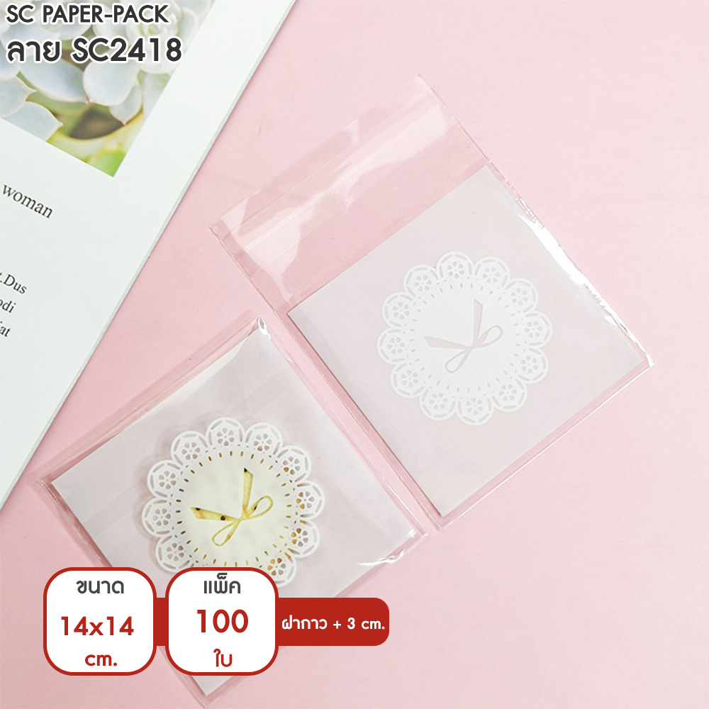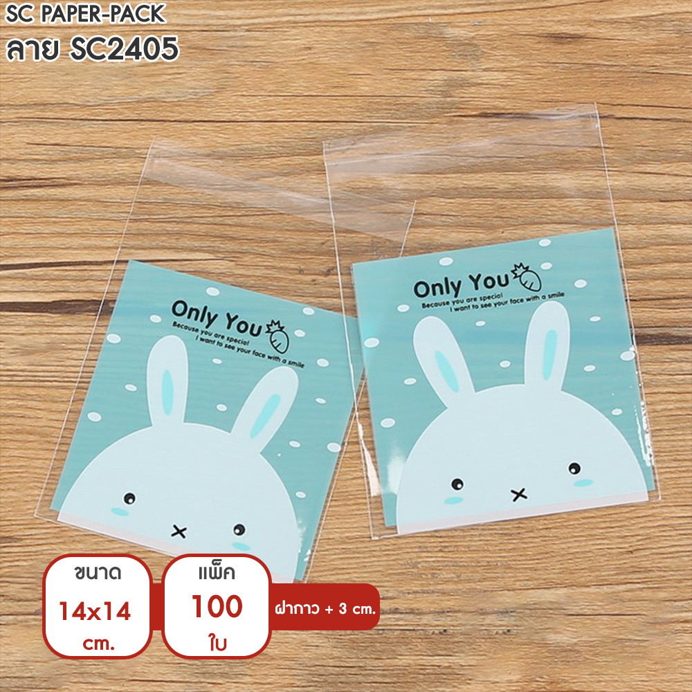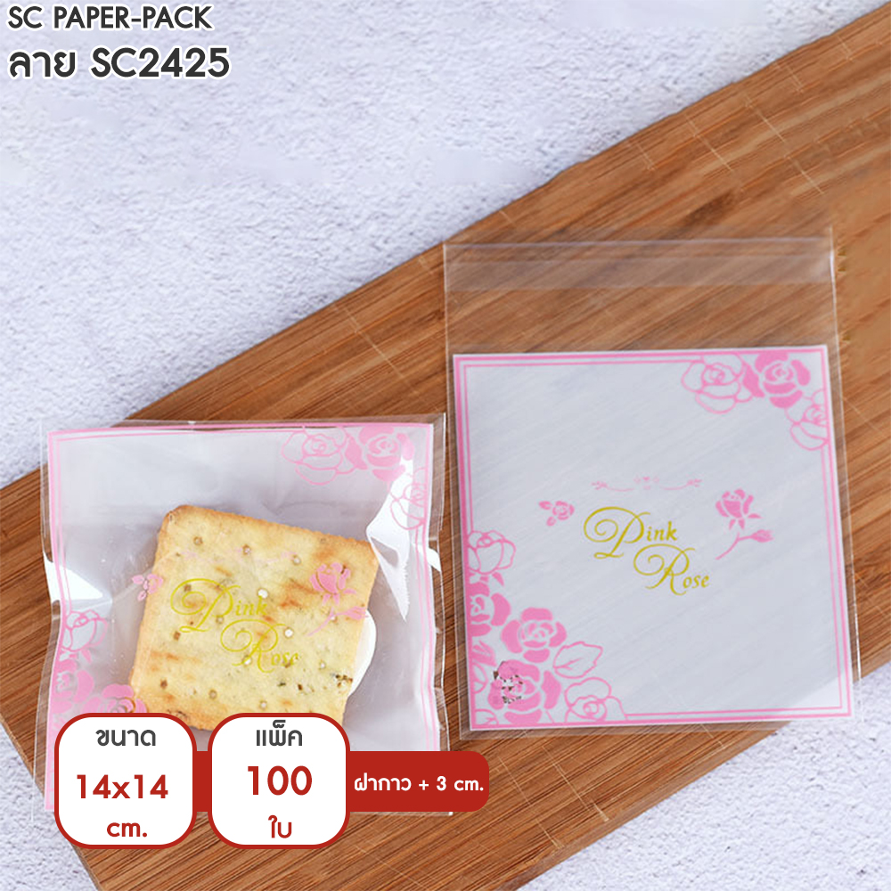 ซองพลาสติก OPP ใส มีเทปกาว พิมพ์ลาย ขนาด 14×14+3 cm. (แพ็ค 100 ใบ)