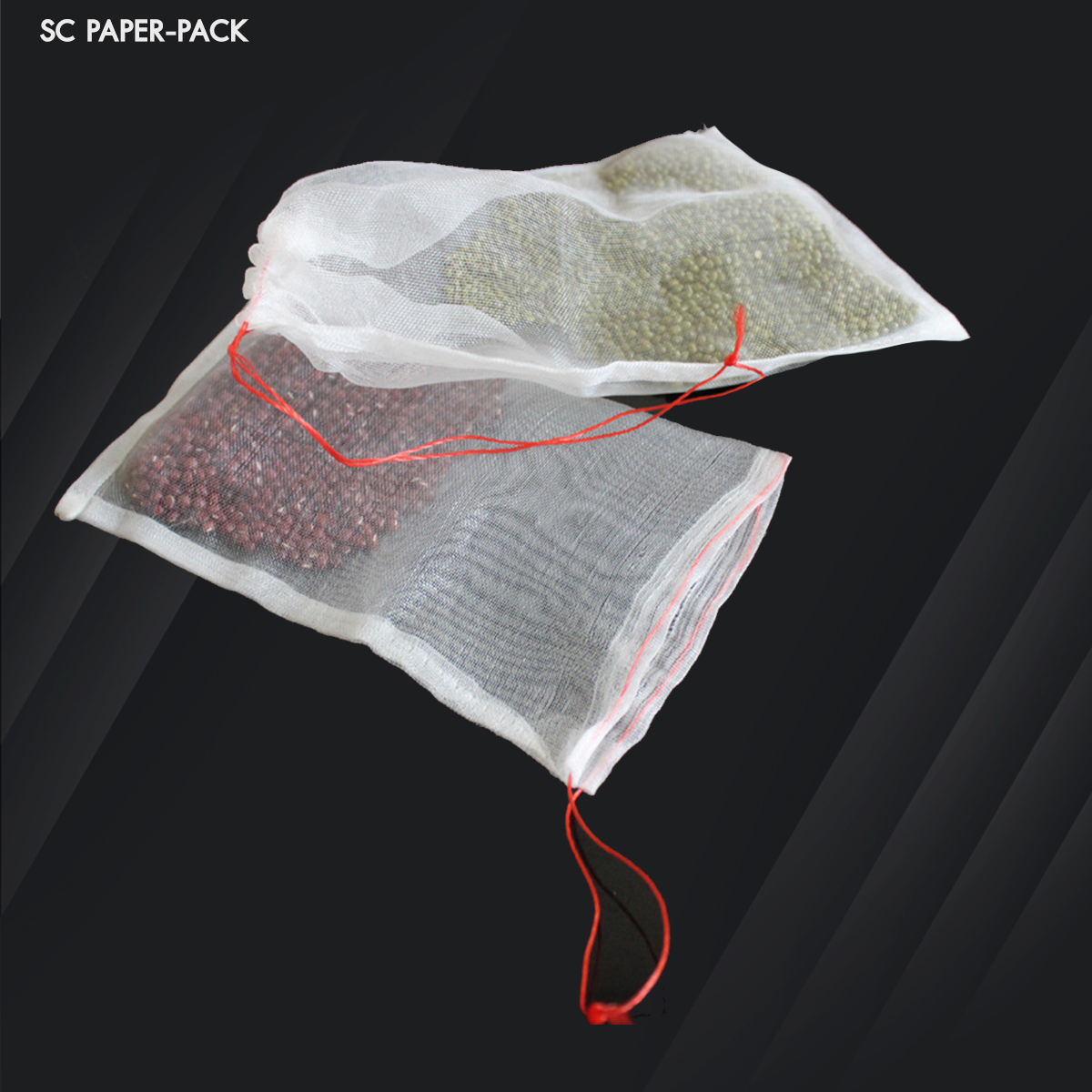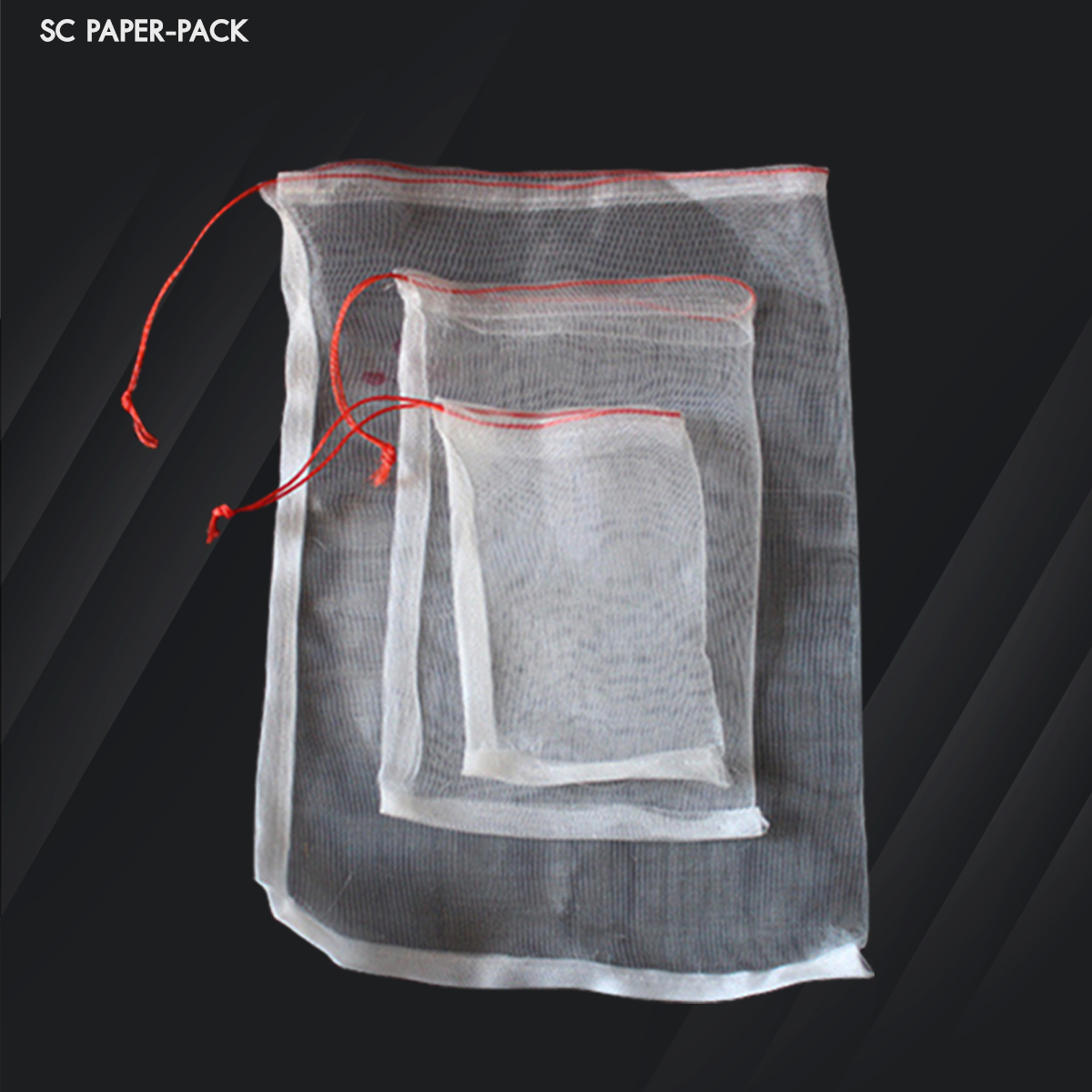 ถุงห่อผักผลไม้ ตาข่ายพลาสติกสีขาว มีเชือกหูรูด