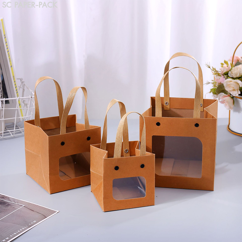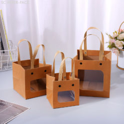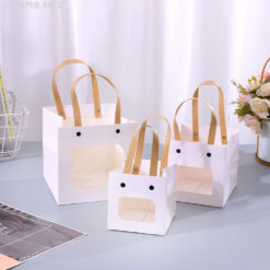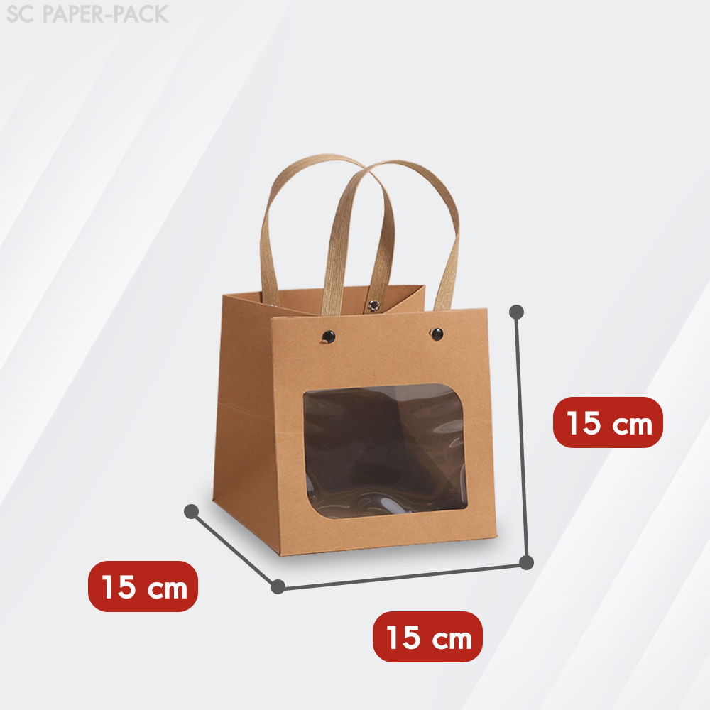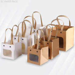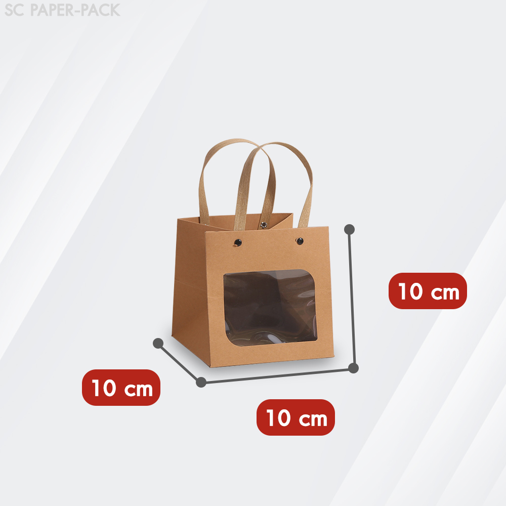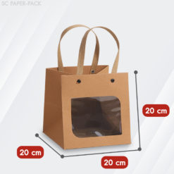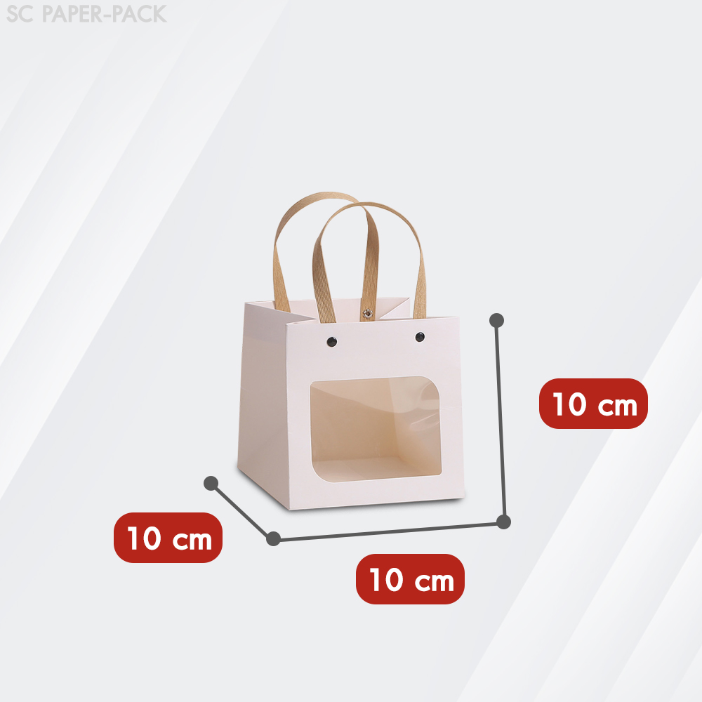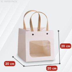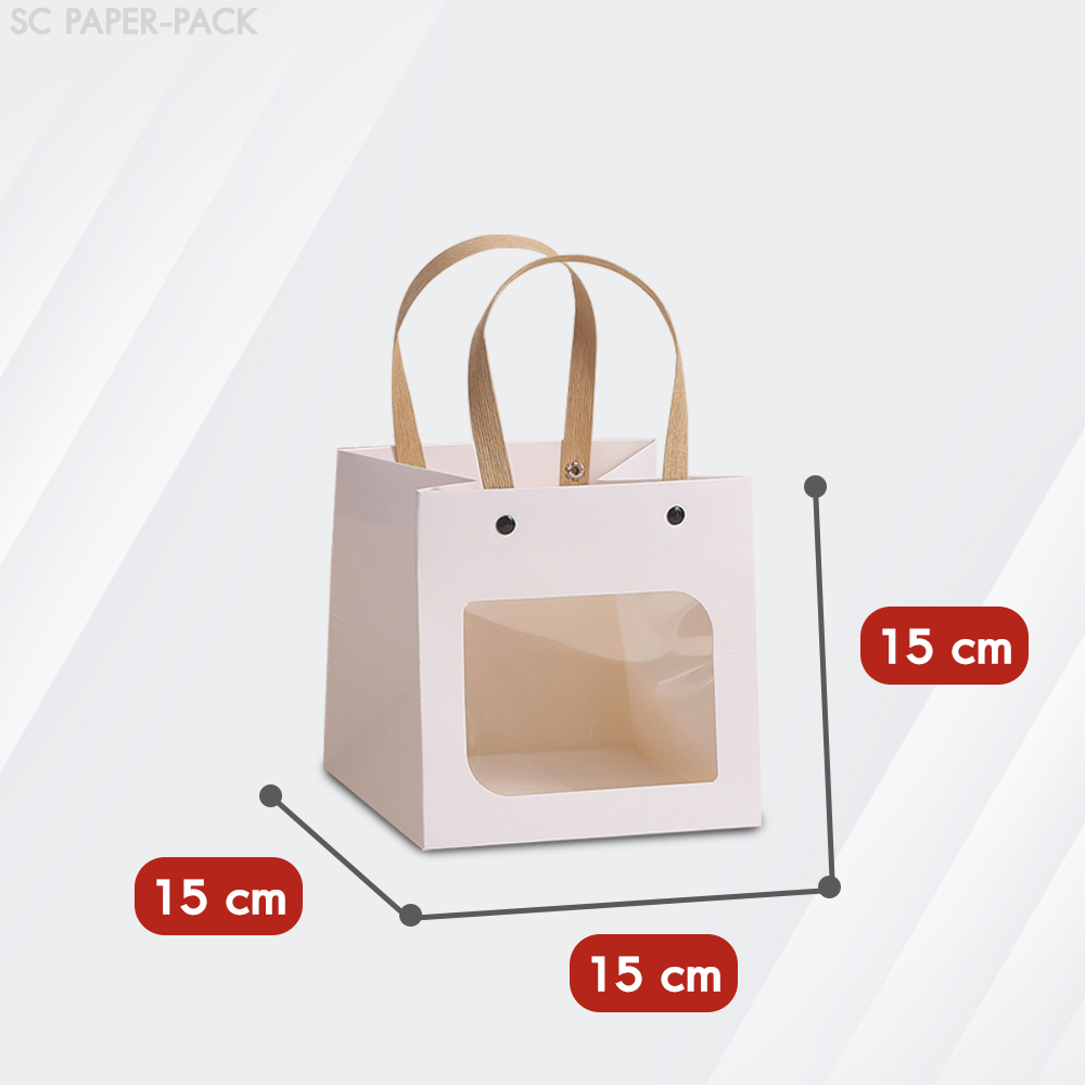 ถุงกระดาษทรงลูกบาศก์ มีหูหิ้ว มีหน้าต่าง สีขาว สีน้ำตาล