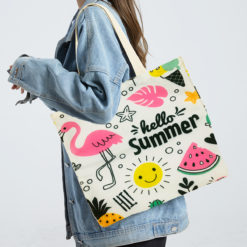 ถุงผ้าลินินหนา พิมพ์ลาย สวยงาม ถุงผ้าแฟชั่น (1 ใบ)